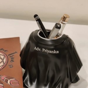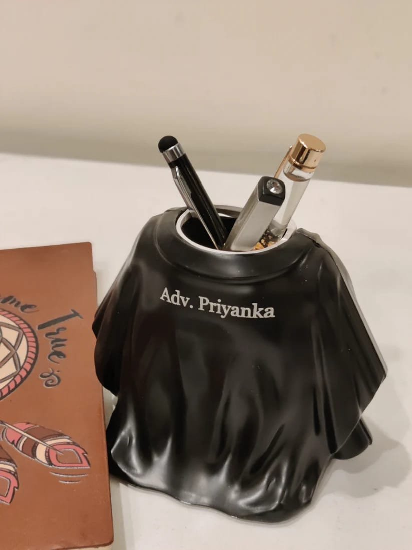 Add a touch of wit and sophistication to your workspace with this uniquely designed ADVOCATE PEN PEN STAND . Crafted to resemble a traditional black legal gown complete with a white neck band, this pen holder pays tribute to the classic courtroom attire worn by lawyers, barristers, and judges. Whether you’re a law student, practicing attorney, or simply a fan of legal aesthetics, this desk accessory is both functional and symbolic.