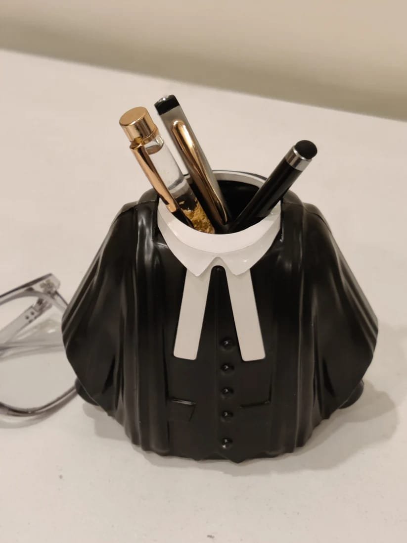 Legal Attire Design: Modeled after the iconic black robe and white necktie combination worn in courts, this pen holder brings an element of professional charm to your desk.