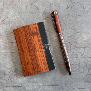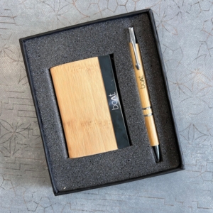 2. Bamboo Card Holder: Beautifully coordinated with the pen, the card holder features a half-bamboo, half-black metal design a modern fusion of natural texture and contemporary finish. Engraved with “Jeevan” on the black panel, adding a personalized, professional touch. Compact yet spacious enough to hold multiple business or credit cards securely. Magnetic closure ensures easy access while keeping cards safe and organized.