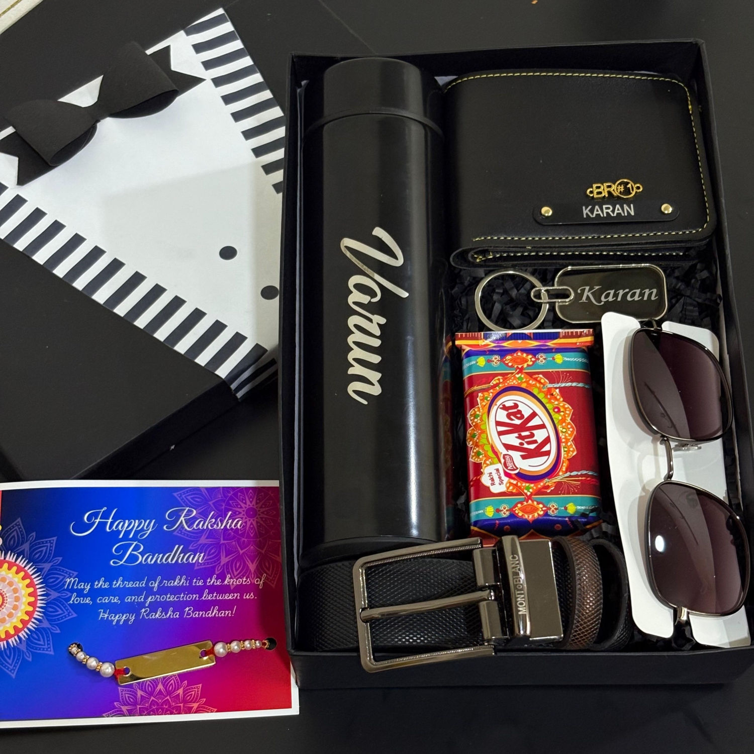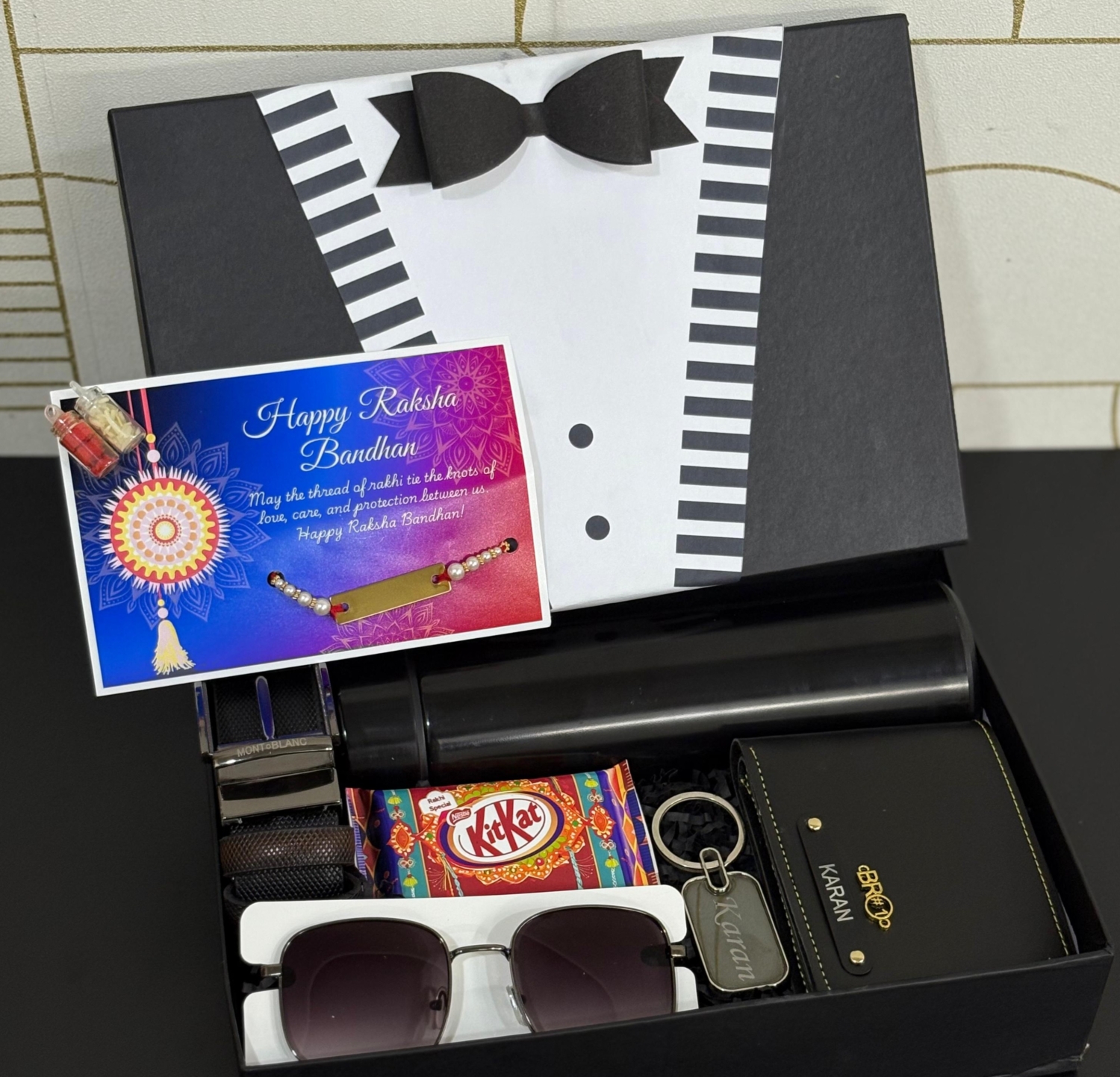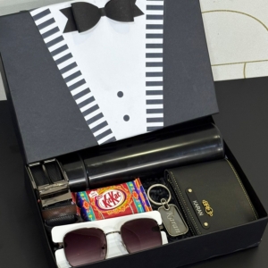 Celebrate the special bond of love and protection with this thoughtfully curated Personalized Rakhi Gift Hamper for your brother. This elegant and stylish gift box includes: