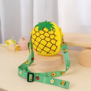 Fun green shoulder strap with colorful pineapple, avocado, and flower prints for a cheerful and playful touch.