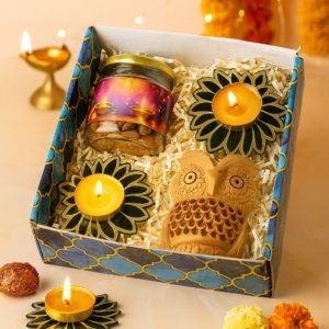 Celebrate the joy of Diwali with this elegant and thoughtfully curated hamper that beautifully blends taste, tradition, and festivity. Designed to bring smiles and spread positivity, this gift box is a perfect choice for family, friends, or corporate gifting.