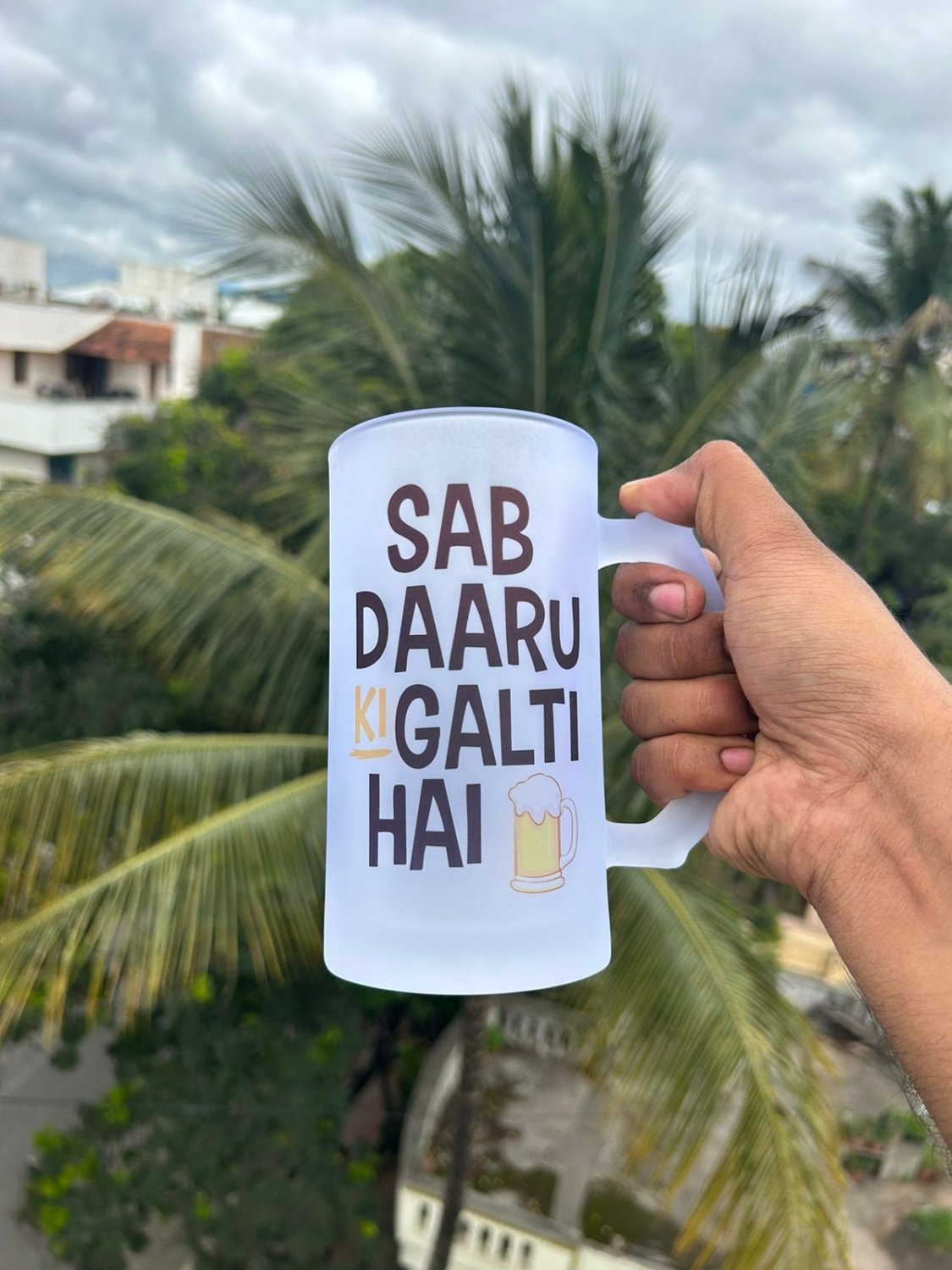 Add a splash of humor and personality to your chill sessions with this Frosted Beer Mug Collection — the perfect mix of fun, style, and functionality! Designed for beer lovers with a sense of humor, each mug features a witty quote that sets the mood for every sip. Whether it’s “Sab Daaru Ki Galti Hai”, “Mr. Right”, or “Stay Beer’d” etc, these mugs bring a playful twist to your drinkware collection.