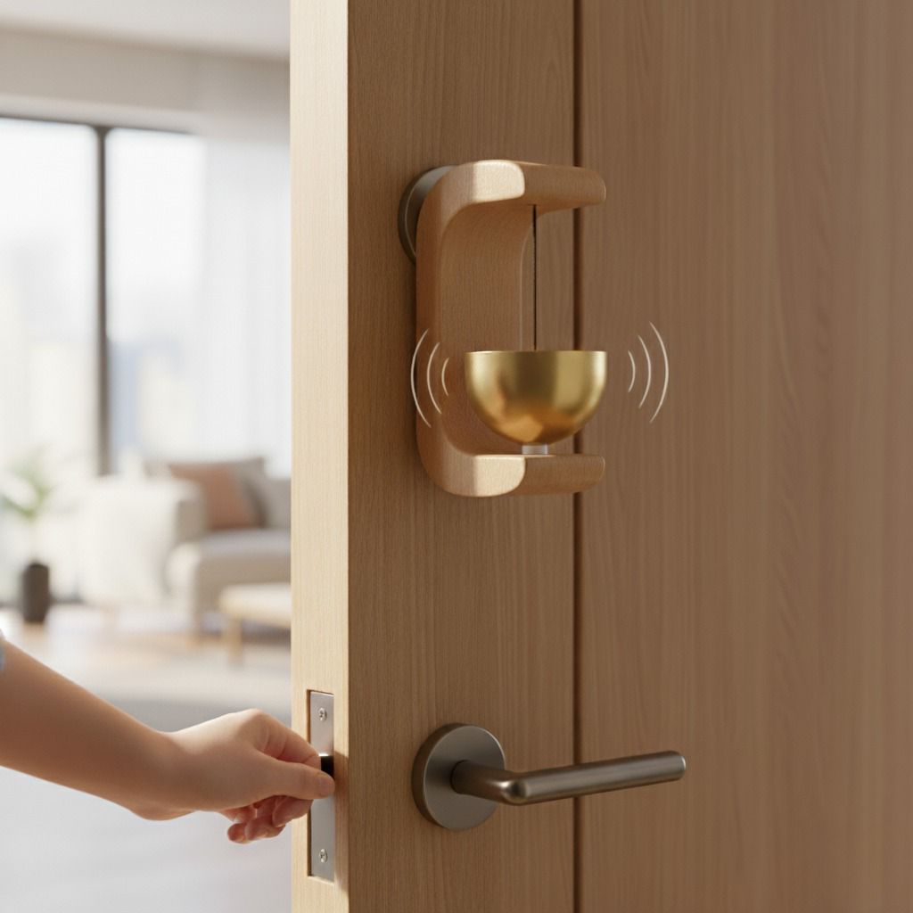 Elegant Design:The sleek, curved wooden frame forms a graceful arch that securely holds the golden bell. Its minimal aesthetic makes it suitable for any modern, Scandinavian, or zen-inspired décor.