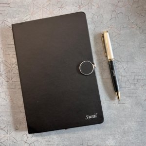 Elevate your writing experience with this premium personalized notebook and pen set, designed for professionals, students, and gifting occasions. The elegant black leather-bound notebook is not just a writing companion but also a stylish statement.