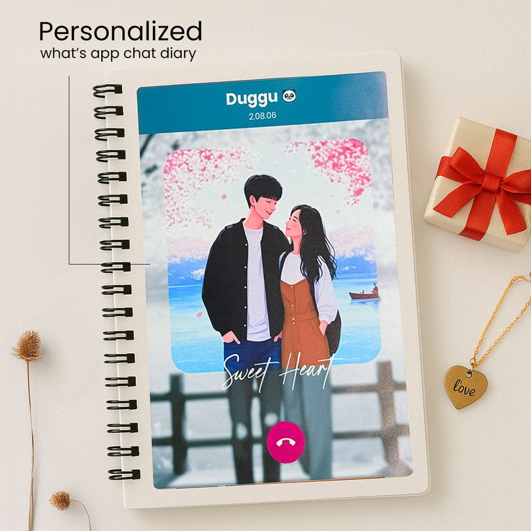 Turn your sweetest conversations into a keepsake with this Personalized Chat Memory Book, a creative and emotional way to relive your most cherished moments. This beautifully crafted spiral diary allows you to print your real chat conversations — whether it’s with your partner, best friend, or someone special — and preserve them forever in a stylish, modern format.