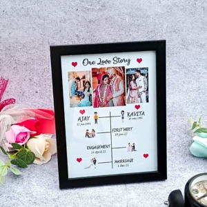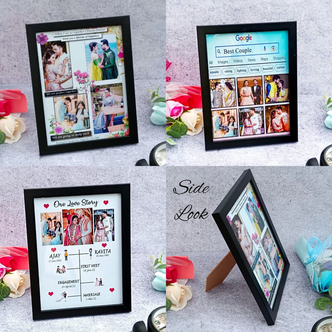 Celebrate your love story in the most beautiful way with this customized couple photo frame — a perfect keepsake to cherish your special moments forever. Designed with elegance and creativity, this frame showcases your journey together — from your first meet to your marriage — in a stylish and meaningful layout.