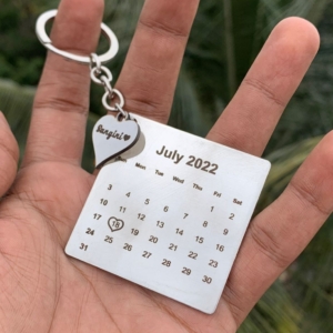 Celebrate your most cherished memories and special dates with this custom engraved calendar keychain. A perfect keepsake to carry with you everywhere, this unique accessory highlights a memorable date along with a personalized name charm, making it a thoughtful and timeless gift.