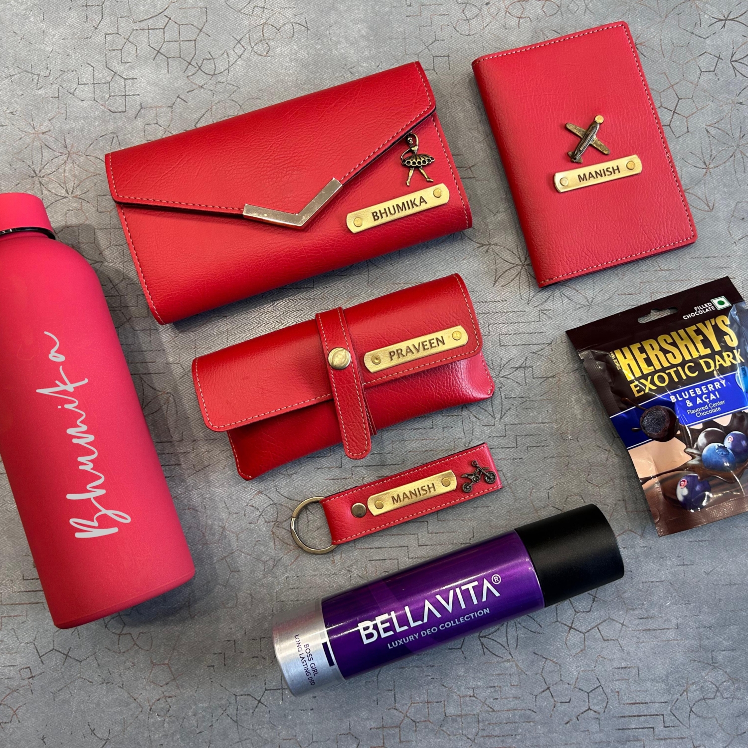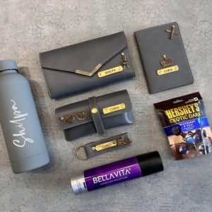Celebrate the special bond you share with a loved one by gifting them this Deluxe Personalized Gift Hamper in a striking red theme. Thoughtfully curated with both utility and charm, this gift set is perfect for birthdays, anniversaries, or just to show your appreciation. Each item is customized with names, ensuring a one-of-a-kind surprise that’s both memorable and meaningful. Perfect For Rakhi Gift for Siblings, Bridesmaid Gifts And Personalized Birthday or Anniversary Hampers.