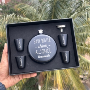 Add a touch of humor and class to your celebrations with this Personalized Hip Flask Set, engraved with the witty quote “Save Water, Drink Alcohol” and customized with the name, Designed for those who enjoy good company, laughter, and a fine drink, this premium set is the perfect blend of style, durability, and personality.
