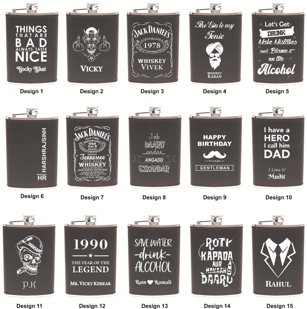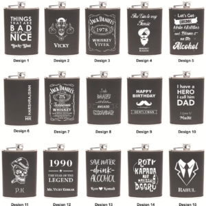 Personalized Design: The flask and accompanying shot glasses are custom printed with the name, adding a personalized and exclusive touch. Ideal for gifting on birthdays, anniversaries, bachelor parties, or festive occasions.