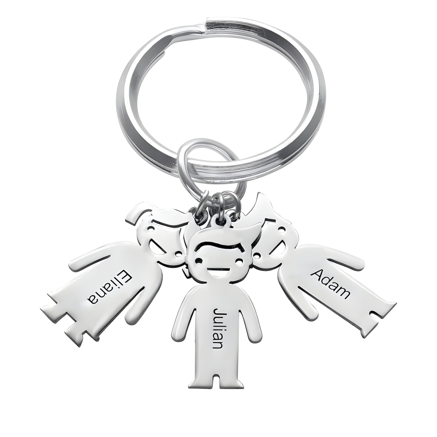 Celebrate the love and bond of your family with our Personalized Family, Kids, Couple Keychain, a beautiful keepsake that turns everyday essentials into heartfelt treasures. This charming keychain features adorable boy and girl charms, each engraved with names of your choice — making it a meaningful gift for parents, grandparents, or anyone who holds family close to their heart.