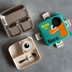 Make mealtimes exciting for your little one with this Personalized Kids Bento Lunch Box, designed to keep food fresh, organized, and fun! Featuring a playful Dinosaur-themed lid with your child’s name customized on it, this lunch box is both practical and personal – ensuring your kid never loses their tiffin again.