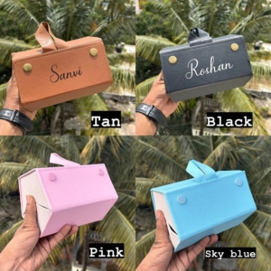 Keep your eyewear stylishly organized and well-protected with this elegant, personalized leather glasses case, designed for both travel and everyday storage. Crafted with premium faux leather in rich brown and black colors, these cases blend classic design with modern convenience, and are custom-embossed with the names, for a unique personal touch.