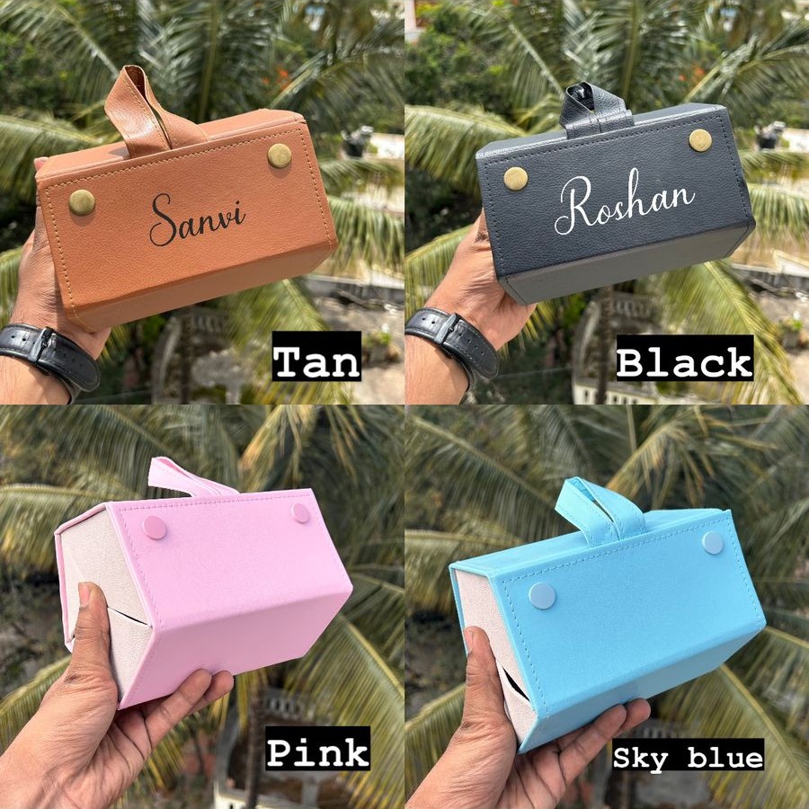 Personalized Name Customization: Both the exterior cases are uniquely personalized with elegant script fonts printed or embossed with custom names, offering a thoughtful gift or personal identifier.