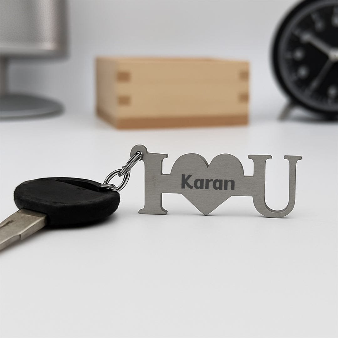 Celebrate love in the most special way with this elegant Personalized “I ❤️ U” Keychain. Crafted with premium-quality stainless steel, this keychain is designed to be a timeless token of affection for your partner. The sleek metallic finish adds a modern touch, making it both stylish and durable.