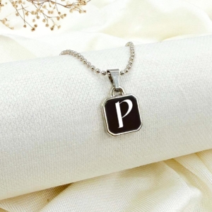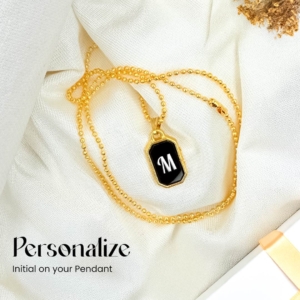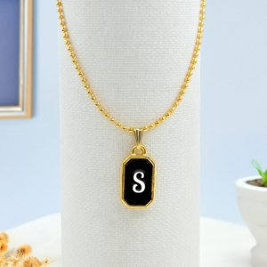 Design: The pendant showcases a sleek rectangular shape with smooth, rounded edges. The deep black enamel background highlights the white “S” initial at the center, giving it a striking and classy appearance.