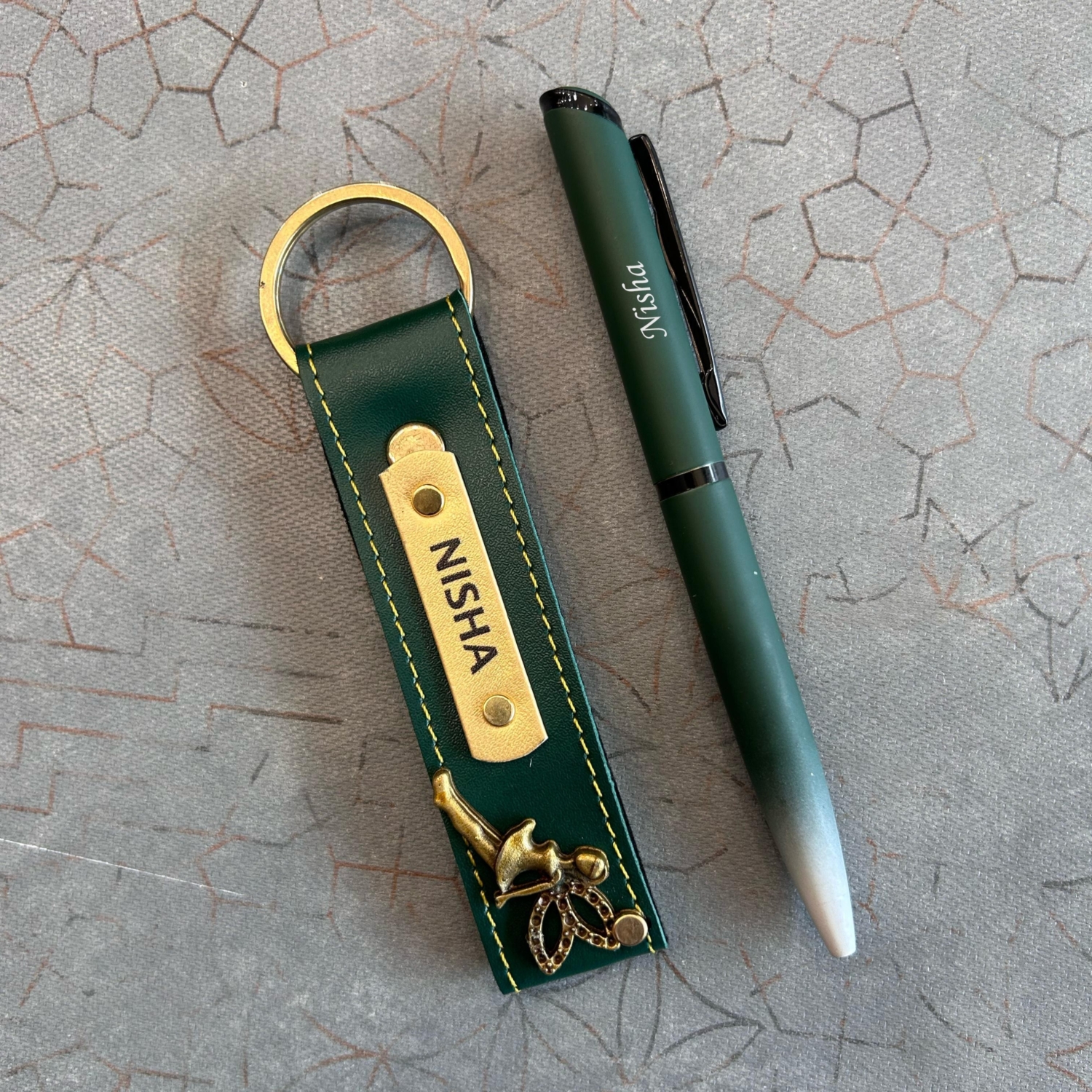 Add a touch of elegance and individuality to your daily essentials with this beautifully crafted Personalized Pen and Keychain Gift Set. Designed in a soft, feminine pink hue, this set is a perfect blend of style, practicality, and sentiment.