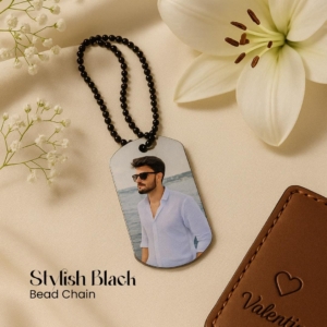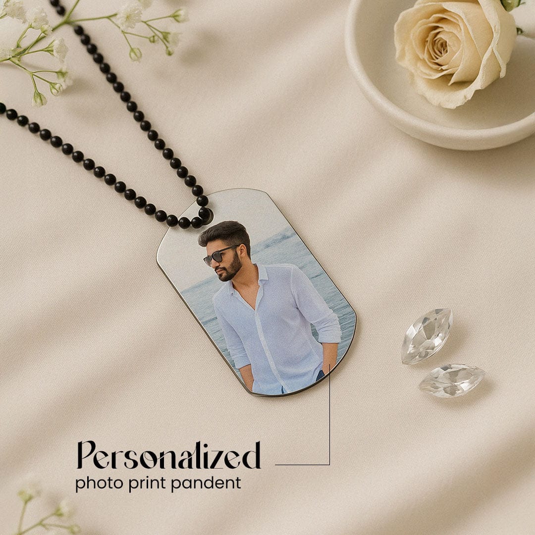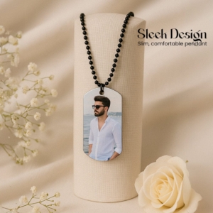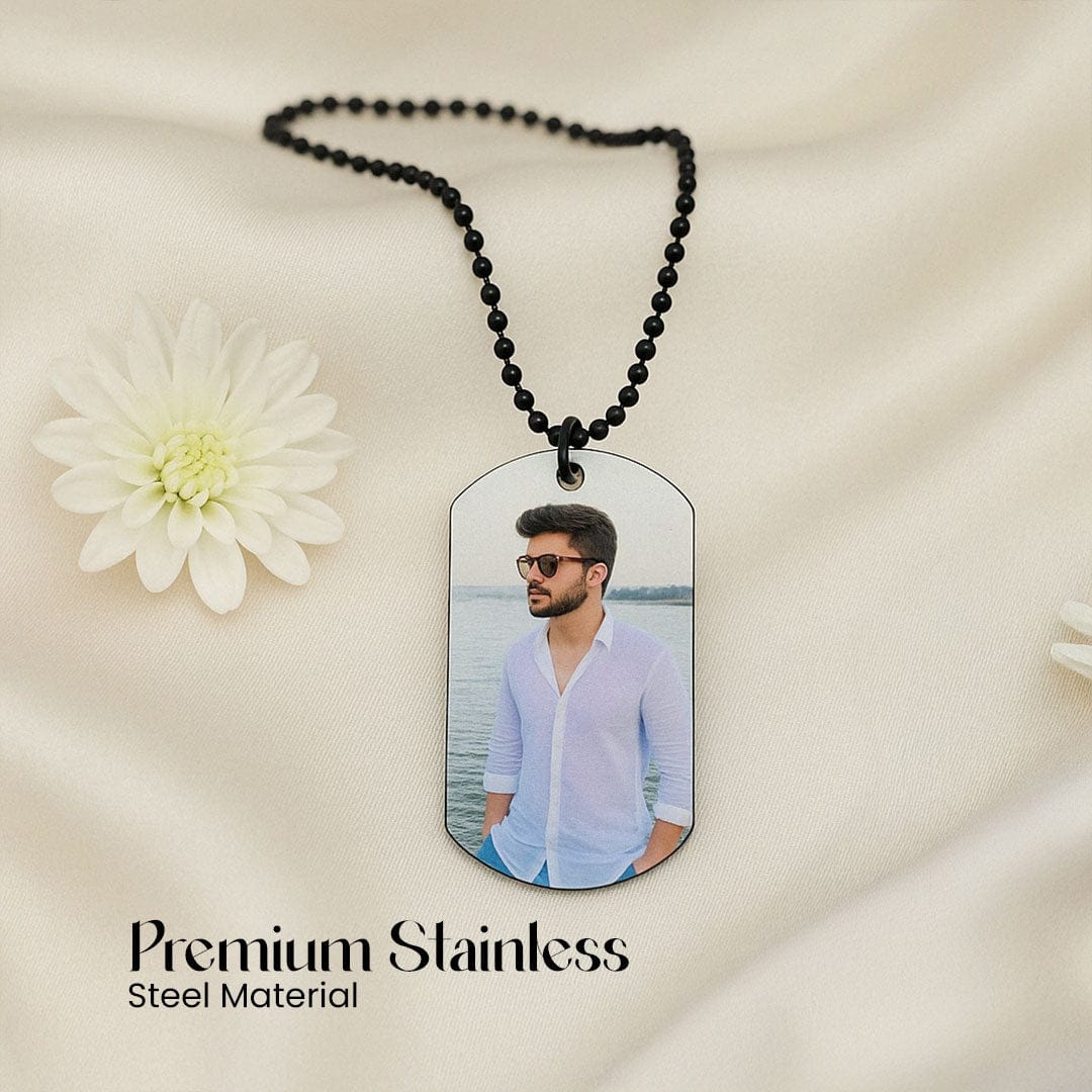 The pendant features a dog-tag style design paired with a sturdy black ball chain, giving it a modern and stylish look suitable for both men and women. Its high-definition photo print ensures vivid colors and long-lasting clarity, making it not just an accessory, but a timeless keepsake.