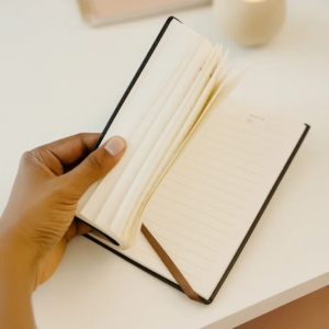 Premium Leatherette Cover: The notebook features a smooth, matte black PU leather cover with a soft-touch finish that exudes class and durability. It’s resistant to wear and easy to clean, ensuring your journal stays elegant through daily use.