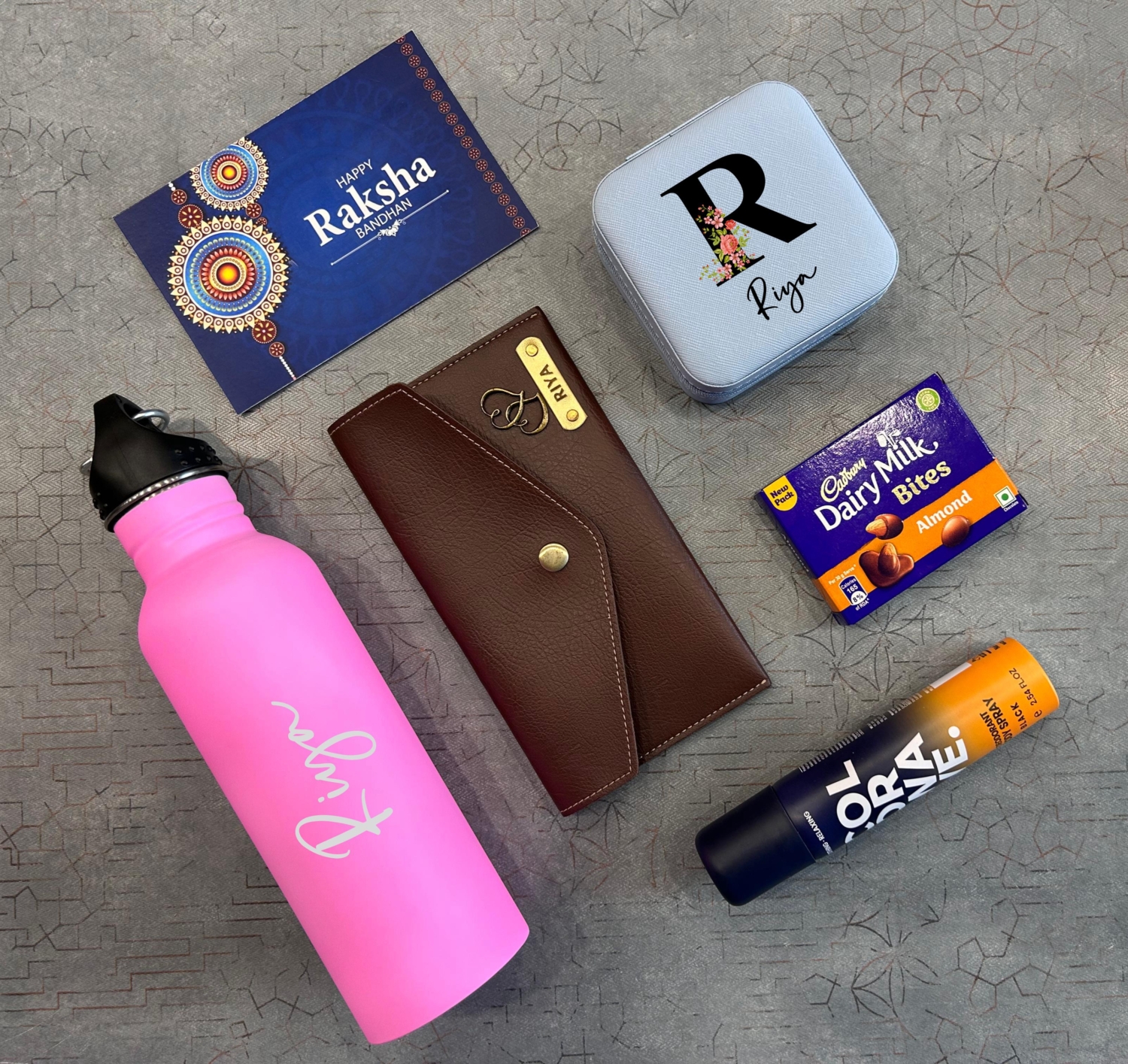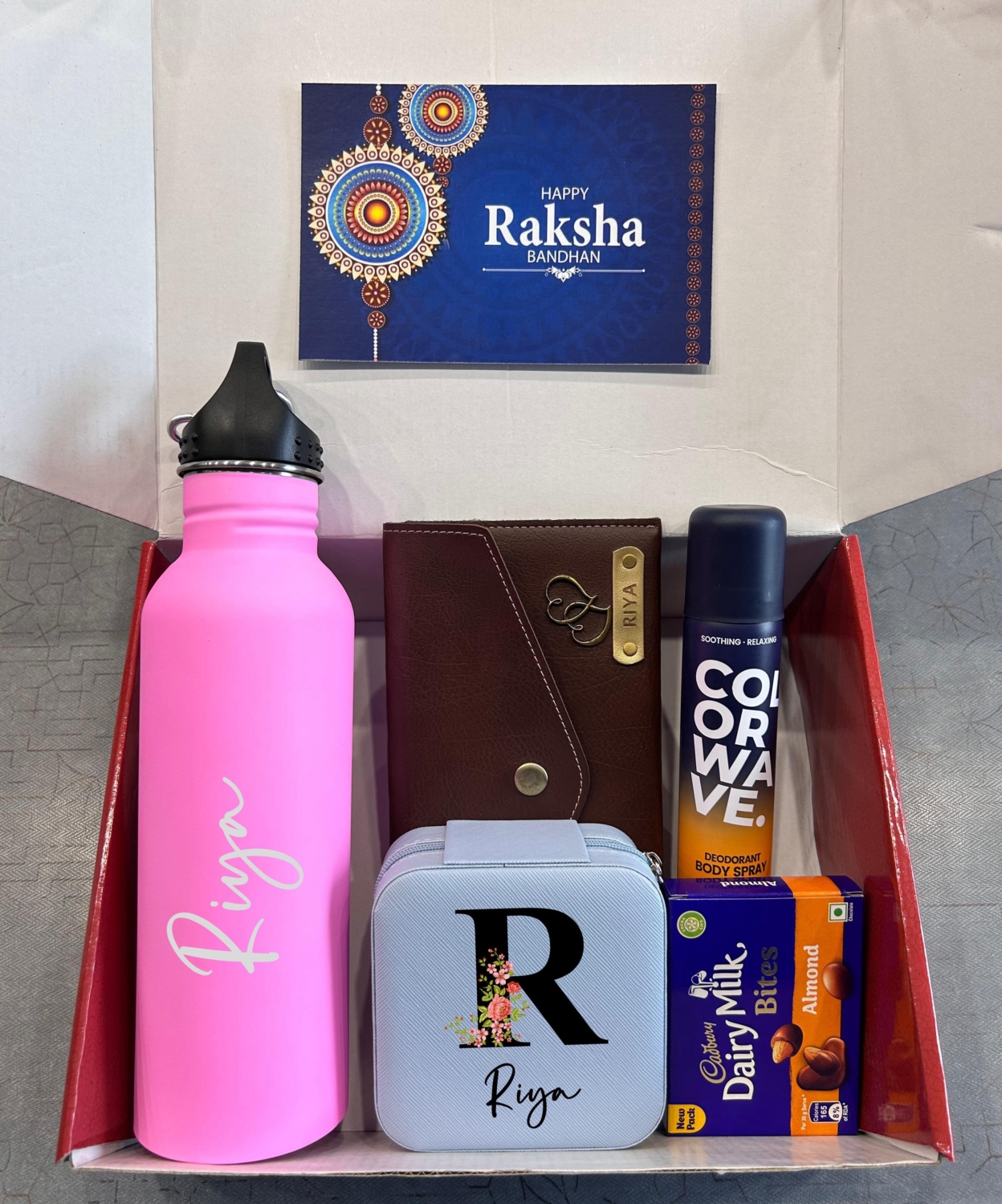 Celebrate the special bond of sibling love with this beautifully curated Personalized Raksha Bandhan Gift Hamper, specially designed for sisters. Each item in the box carries a personal touch, making your gesture even more thoughtful and cherished.