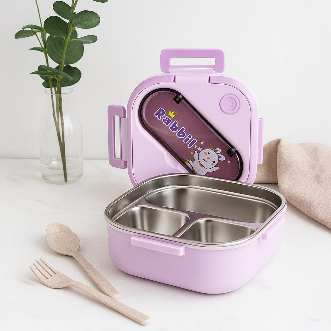 Dual-Layered Build: BPA-free plastic container for snacks, fruits, or dry items. Removable stainless steel tray with 3 divided compartments to neatly separate rice, curries, and sides.