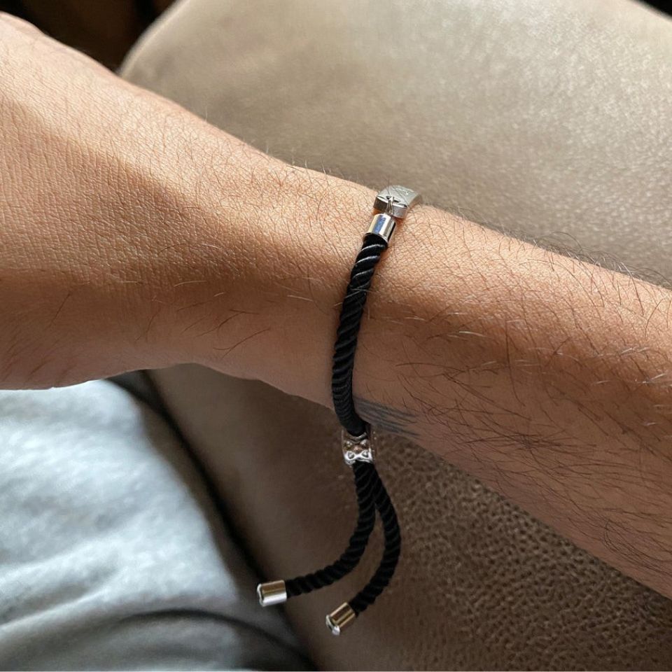 The nameplate is crafted from durable, tarnish-resistant metal with a smooth, polished finish that contrasts beautifully against the premium black twisted rope cord. The cord is soft yet sturdy, offering all-day comfort without compromising on durability. The bracelet comes with a secure adjustable knot closure that allows a perfect fit for all wrist sizes, making it suitable for both men and women.
