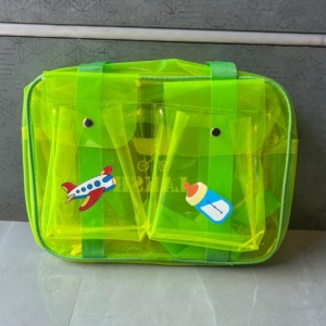 Vibrant Transparent Design: Made from durable, high-quality transparent PVC material in a bright neon yellow-green hue that’s both eye-catching and easy to clean. The see-through design allows you to quickly locate items without rummaging through the bag.