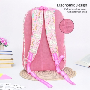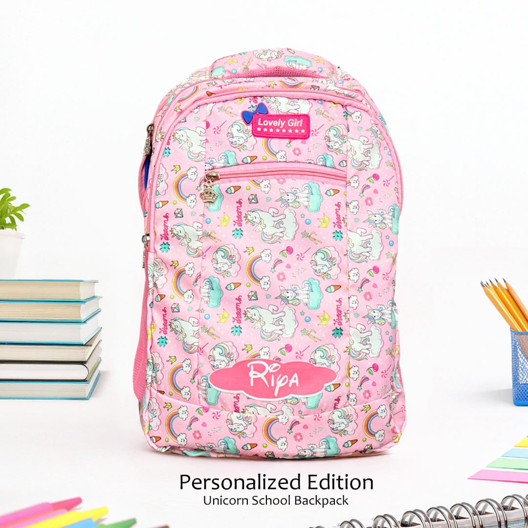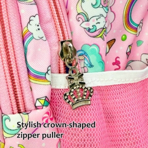 Let your little star head to school in magical style with the Personalized Unicorn School Bag. Designed for sparkle-loving school-goers, this vibrant pink backpack is adorned with whimsical unicorns, rainbows, stars, and hearts – turning everyday school moments into something enchanting.