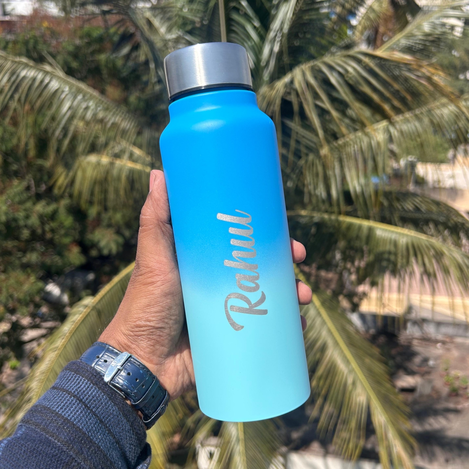 Personalized Name Engraving: The bottle features laser-engraved personalization displaying in elegant gray lettering.