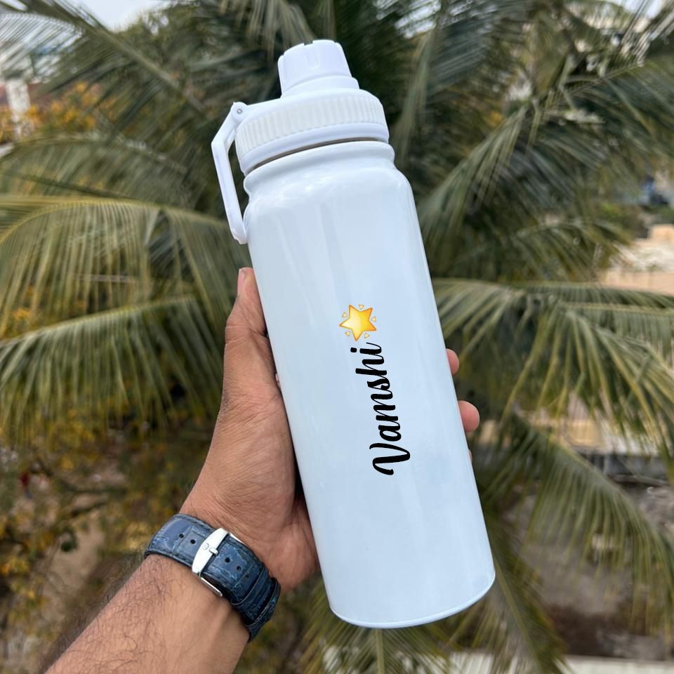 Stay hydrated in style with this elegant Personalized White Water Bottle, customized with the name in a sleek, modern font and accented with a golden star emoji for a unique touch. This premium-quality bottle combines minimalist aesthetics with practical functionality, perfect for your daily routine, workouts, or travels.