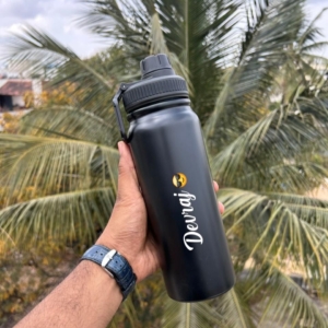 Personalized Name Print: Customized with the name “Vamshi” in a bold, elegant script, this bottle adds a personal touch to your hydration routine. The design makes it an ideal gift for friends, colleagues, or loved ones.
