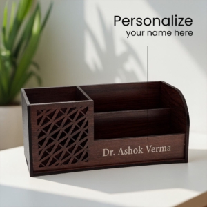 Keep your workspace organized and stylish with this premium personalized wooden desk organizer, designed to blend functionality with refined aesthetics.