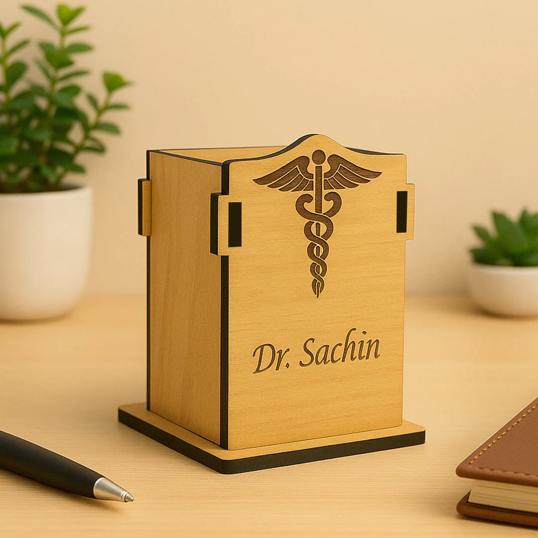 Add a touch of professionalism and elegance to any doctor’s desk with this customized wooden pen holder. Thoughtfully designed for medical professionals, this pen stand blends practicality with a sophisticated aesthetic — making it an ideal gift for doctors, medical students, or healthcare practitioners.