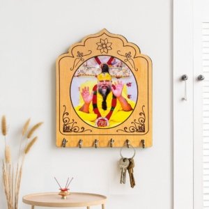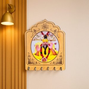 Add a touch of devotion and elegance to your home with this Personalized Wooden Key Holder with Photo Frame, designed to blend functionality with sentiment. Crafted from high-quality wood, this wall-mounted key holder features a beautifully engraved floral border and a customizable photo section, perfect for placing an image of your deity, guru, or loved one.