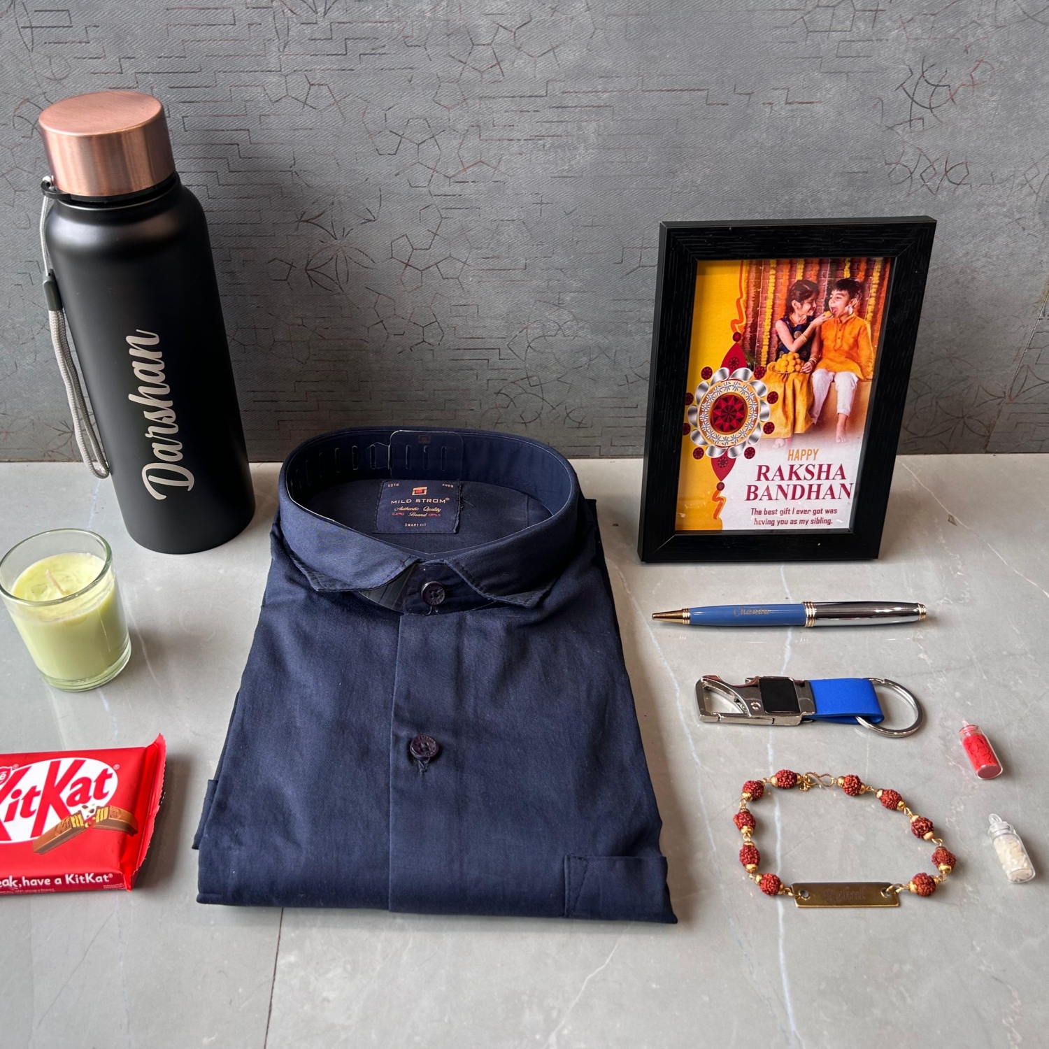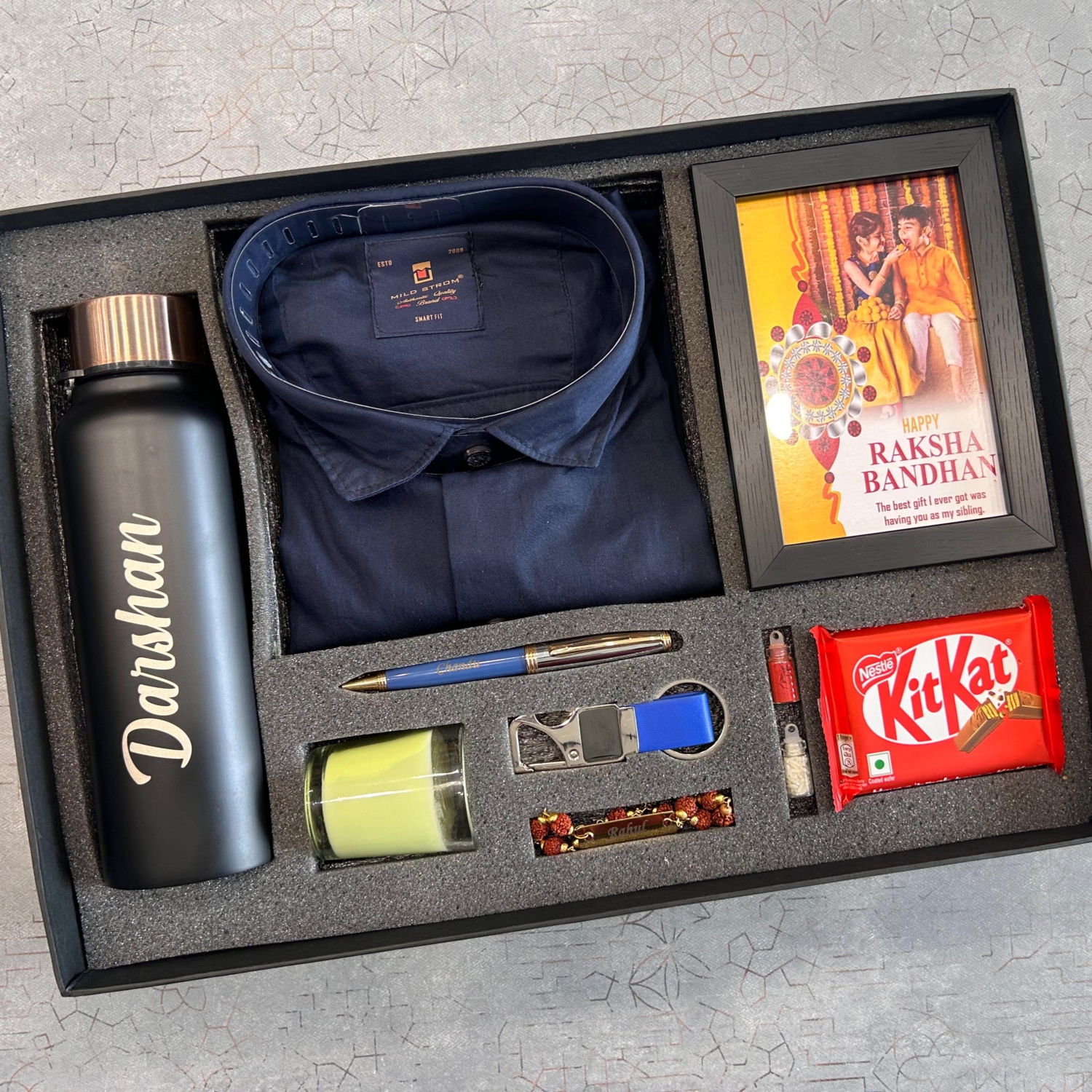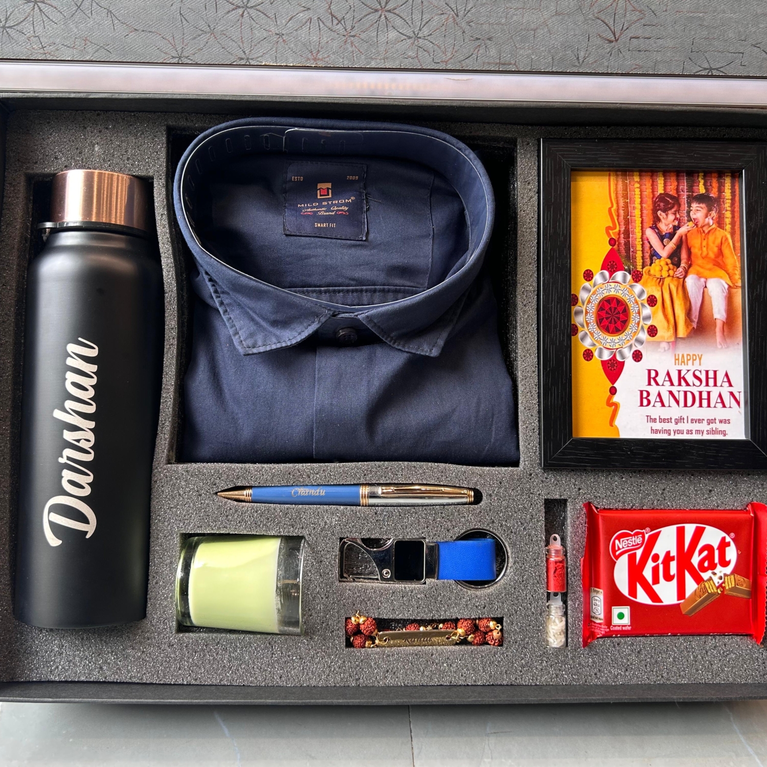 Celebrate the eternal bond of love and protection this Raksha Bandhan with our Premium Personalized Raksha Bandhan Gift Hamper for Brother, a thoughtfully curated box packed with style, sentiment, and utility. Designed to make your brother feel truly special, this luxurious hamper combines personalization, tradition, and indulgence in one elegant package.