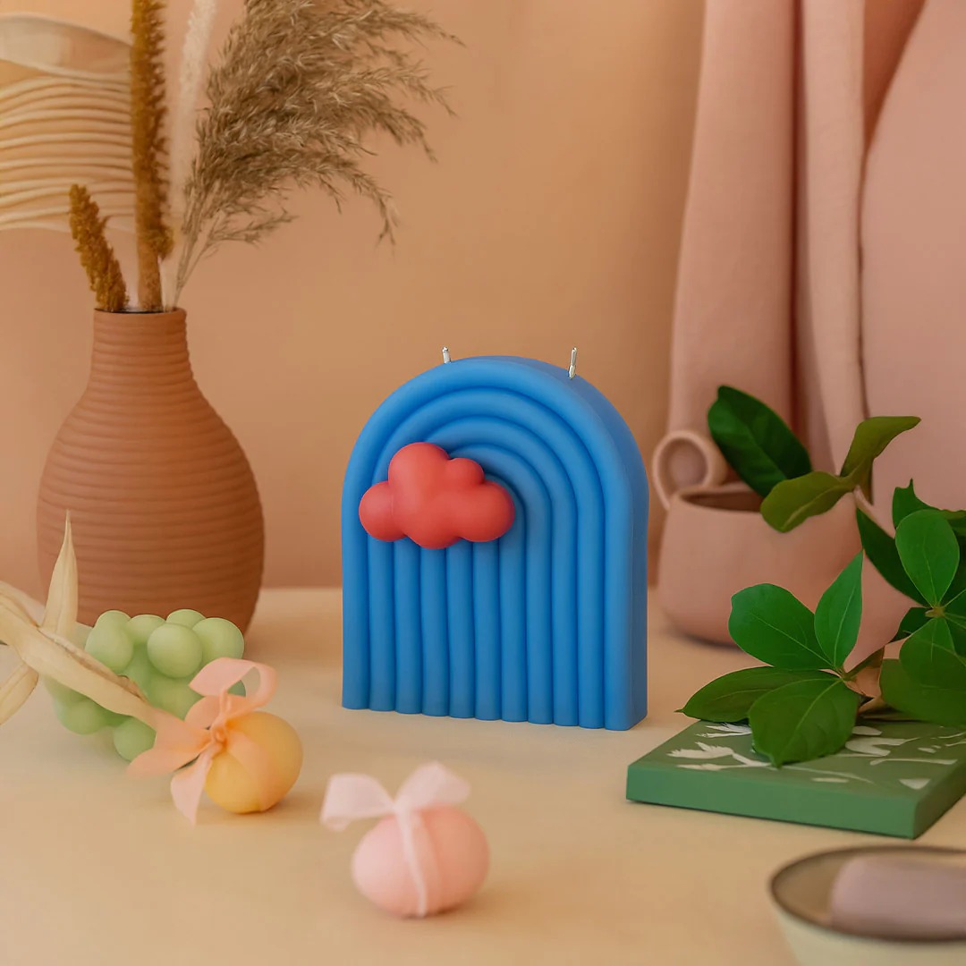 Bring a touch of artful charm and cozy warmth to your space with our Blue Arch Cloud Decorative Candle — a unique blend of modern design and soothing ambiance. Handcrafted with care, this candle stands out with its arch-shaped silhouette in a calming pastel blue hue, complemented by a soft pink cloud accent that adds a whimsical, dreamy feel.