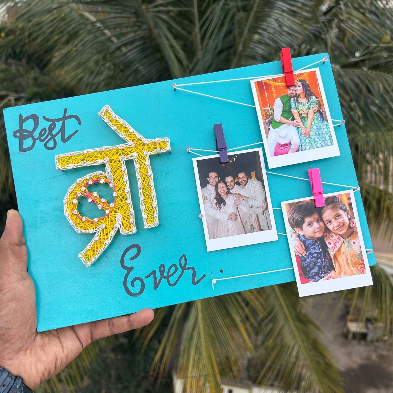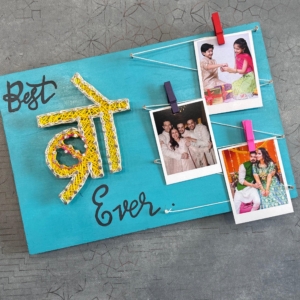 Celebrate the unbreakable bond with your brother in the most artistic way with our handcrafted “Best Bro Ever” String Art Photo Frame. Designed on a vibrant turquoise wooden base, this heartfelt piece combines modern aesthetics with traditional Hindi typography to make an unforgettable gift.