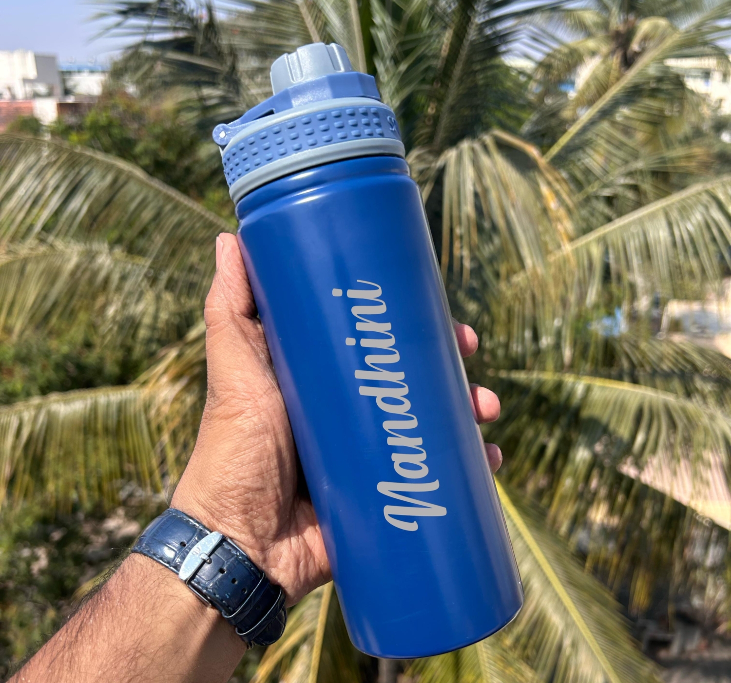 Stay stylish and hydrated with this Personalized Blue Sipper Bottle, custom-made with the name, elegantly printed on its sleek body. Designed with a durable, BPA-free plastic exterior and a secure flip-top cap, this bottle is perfect for everyday use, whether at the gym, office, school, or on-the-go adventures. Personalized Identity Helps avoid mix-ups in shared spaces like offices or gyms. Perfect Gift for friends, family, or colleagues. And also reduces single-use plastic bottle consumption.