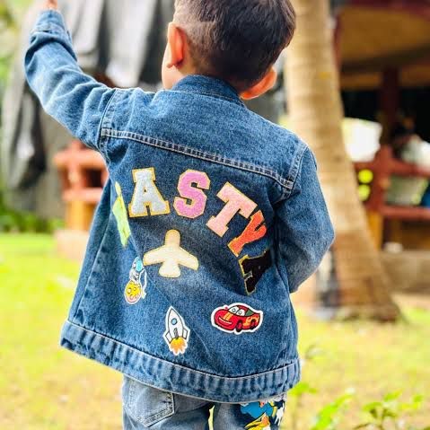 The highlight of this jacket lies in its vibrant embroidered patches, featuring airplanes, rockets, cars, and cute motifs that children love. The back of the jacket showcases bold, colorful letters, giving it a unique and eye-catching appeal. It’s not just a jacket—it’s a fashion statement that makes your child stand out wherever they go.