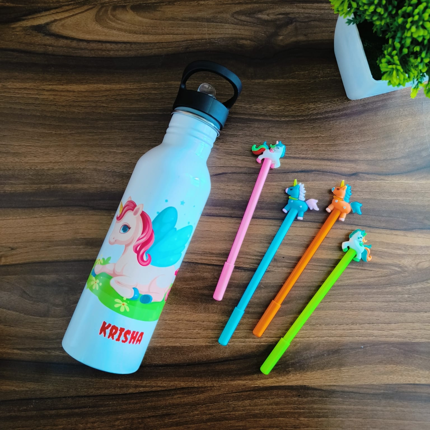 The water bottle with 4 gel pen combo is a versatile and practical accessory that combines hydration and creativity in one sleek package. This unique product features a durable and reusable water bottle with a capacity to keep you refreshed throughout the day. It also includes four high-quality gel pens in different vibrant colors, allowing you to unleash your artistic side whenever inspiration strikes. Whether you’re at school, work, or on-the-go, this innovative combo ensures you stay hydrated while providing an outlet for your creative expressions. Stay hydrated and let your imagination flow with the water bottle with 4 gel pen combo.